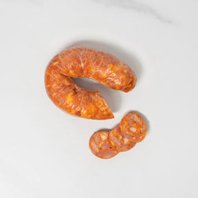 Here is a beautiful product for quick and efficient meals. Our cold-smoked chorizo made from Beaurivage pork from Quebec will pair well with all occasions. Add it to your favorite culinary creations or simply on a charcuterie platter and you will surely experience a dream.
